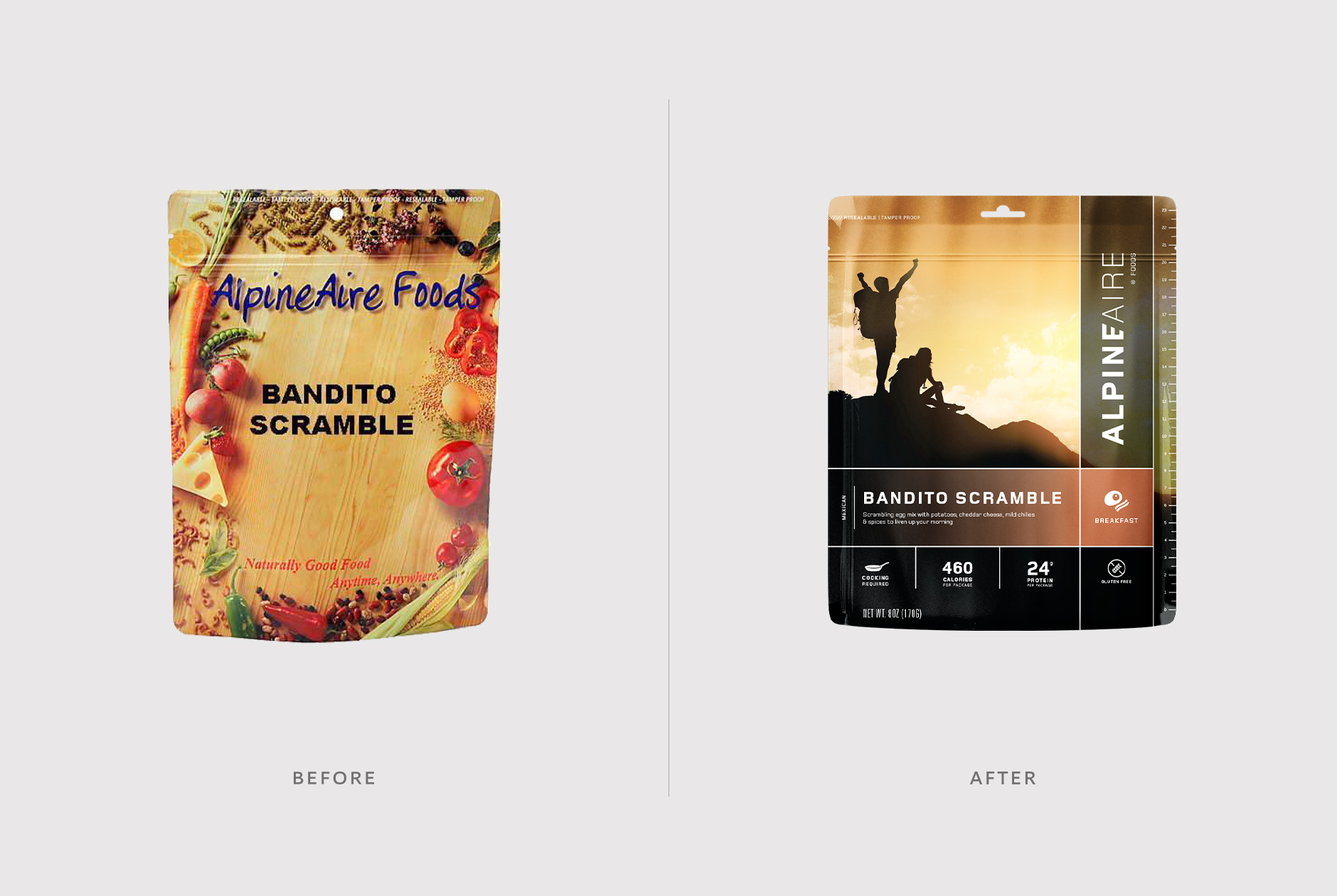 AlpineAire is a freeze-dried food company that largely caters to an outdoor audience, from casual car campers to backpackers looking to make every ounce and calorie count. A longstanding product in the landscape, AlpineAire was failing to compete for shelf space and customer loyalty.
