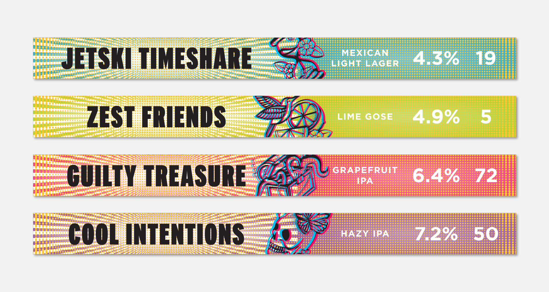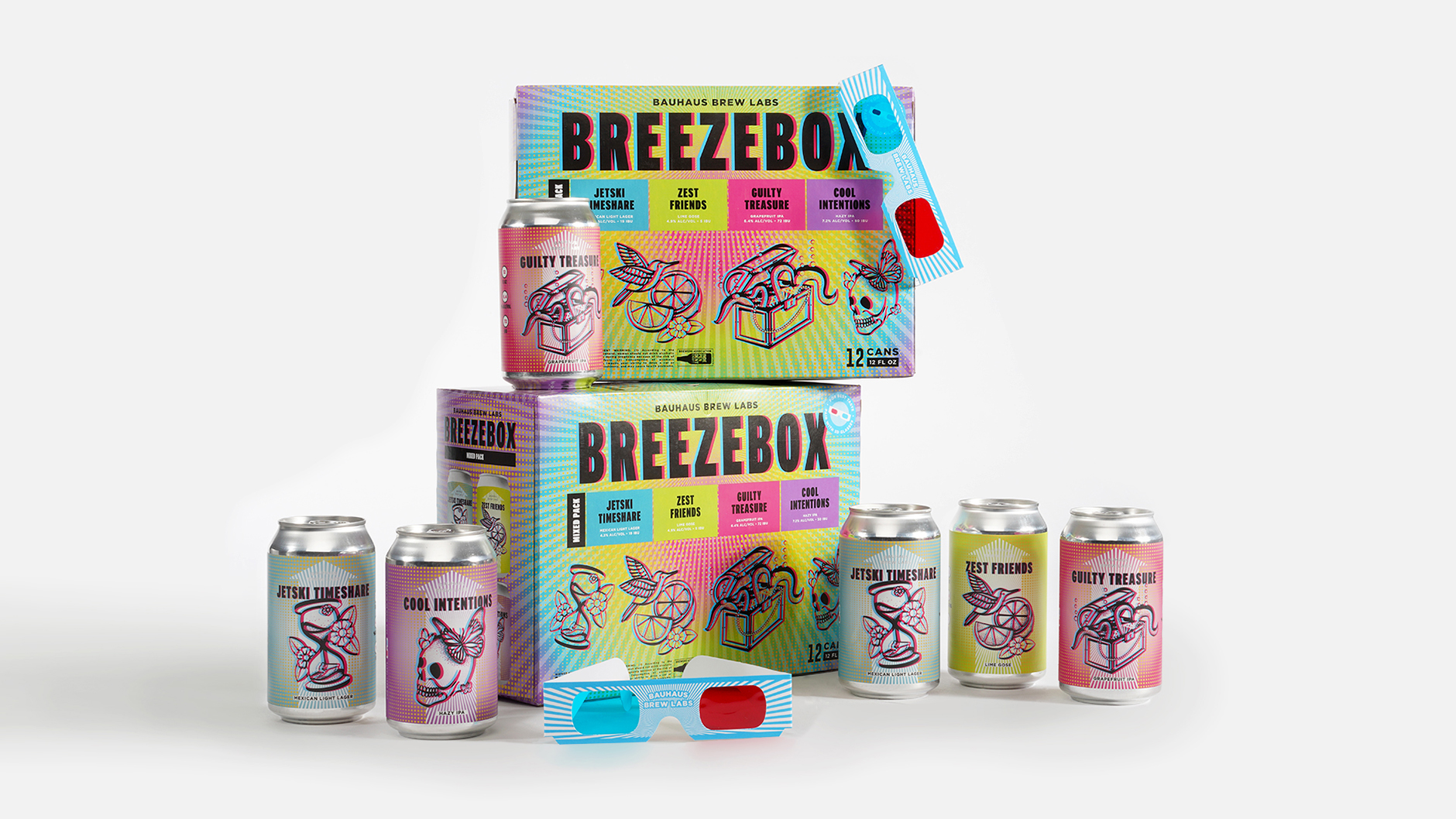 With a new design each year and increasing competition in a crowded beer aisle, the challenge was to create something bold, colorful and disruptive. Drawing inspiration from 3D art, American traditional tattoo illustration, pop art and tie-dye, the final design is vibrant and expressive, evoking the feeling of a carefree summer day. To support the launch, a custom pair of 3D glasses was created and distributed at the brewery, allowing drinkers to fully experience the dimensional artwork across the cans and packaging.