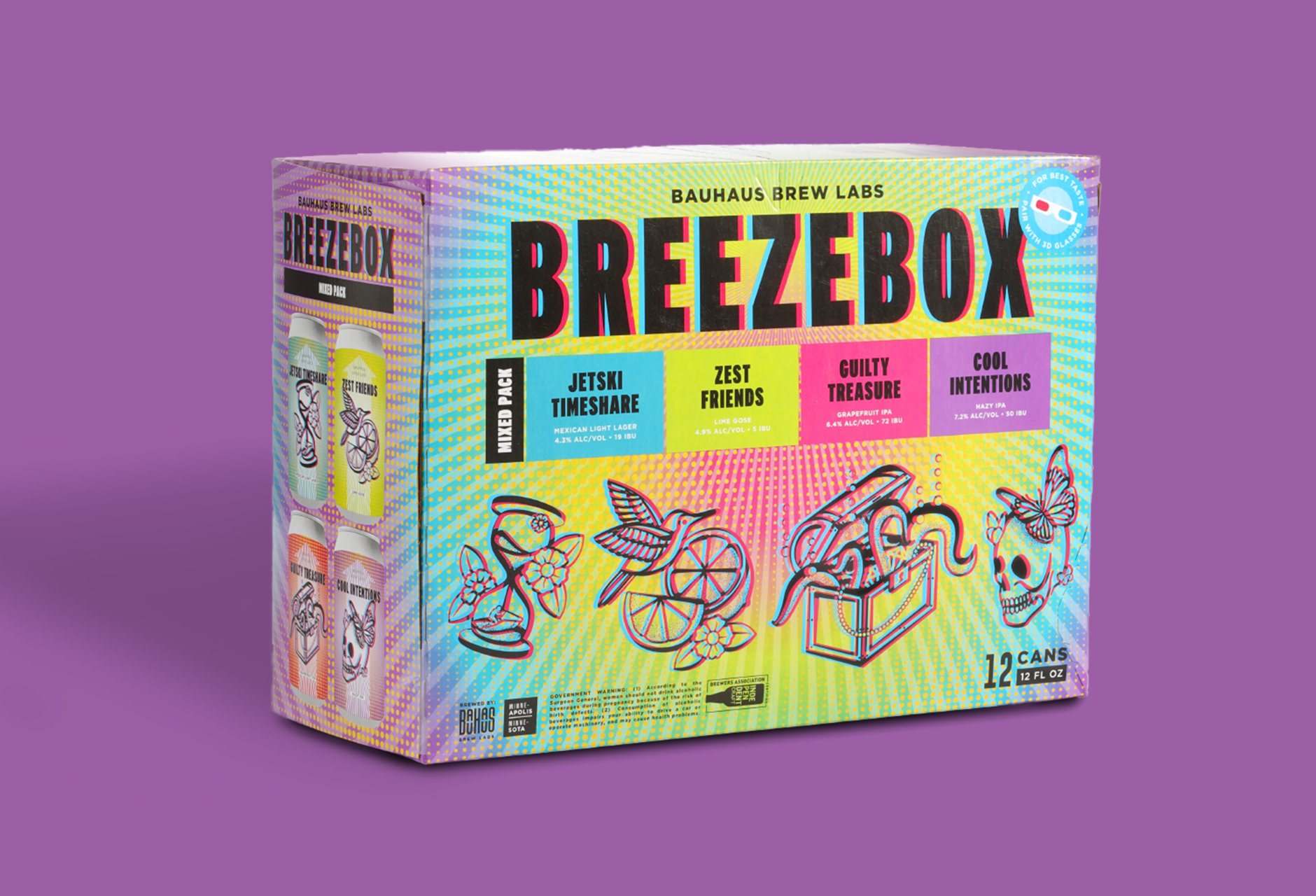 Bauhaus Brew Labs is a well-loved Minneapolis brewery known for its energetic brand and inventive approach to craft beer. Each summer, they release a seasonal variety pack—aptly named the ‘Breezebox’—featuring four new brews designed to capture the spirit of the season.