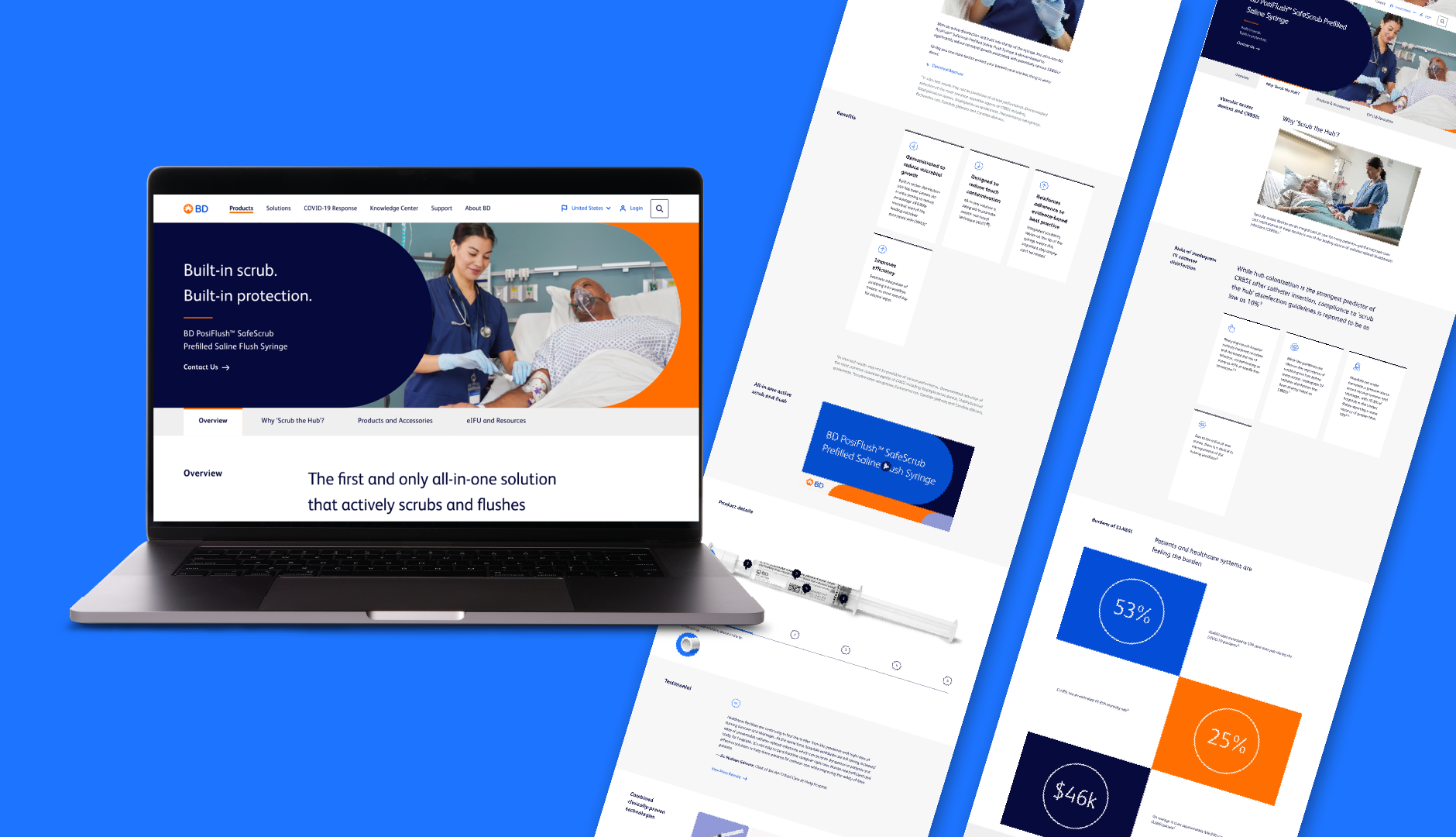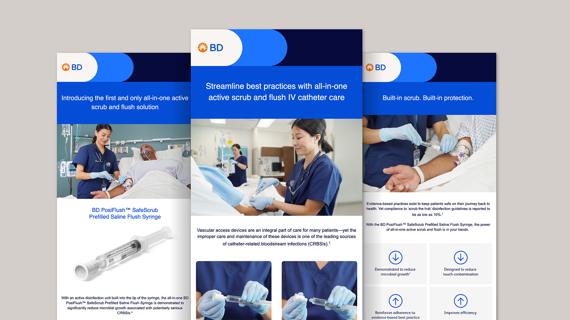 BD is one of the world’s largest medical technology companies, delivering billions of products annually and continually advancing innovations that support the healthcare industry. One of their many new product launches, the BD PosiFlush™ SafeScrub Prefilled Saline Flush Syringe introduced an integrated disinfection unit within the tip cap of their widely-used flush syringe. The advancement was designed to encourage clinician compliance with disinfection protocols while helping reduce microbial growth, all within a single, essential device.
